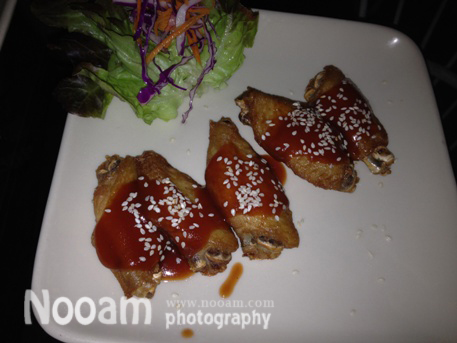 เมนูแรกนะครับ ปีกไก่ทอดราดซอสเหล้าแดง อร่อยครับ